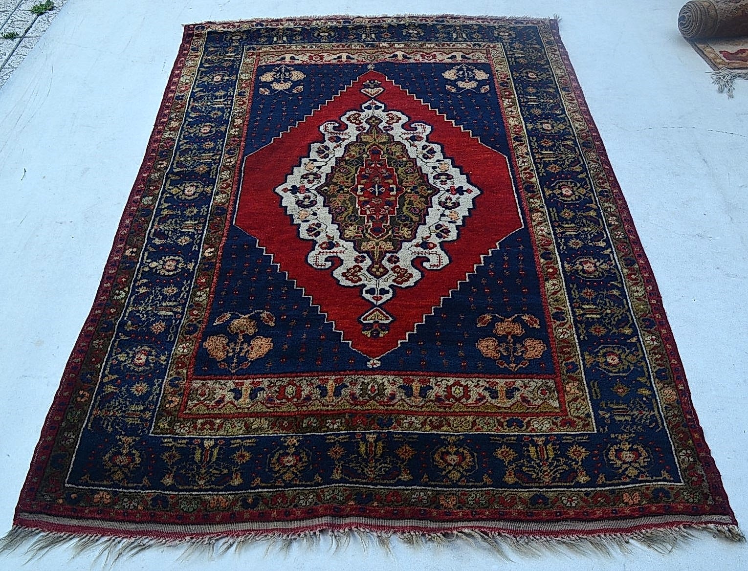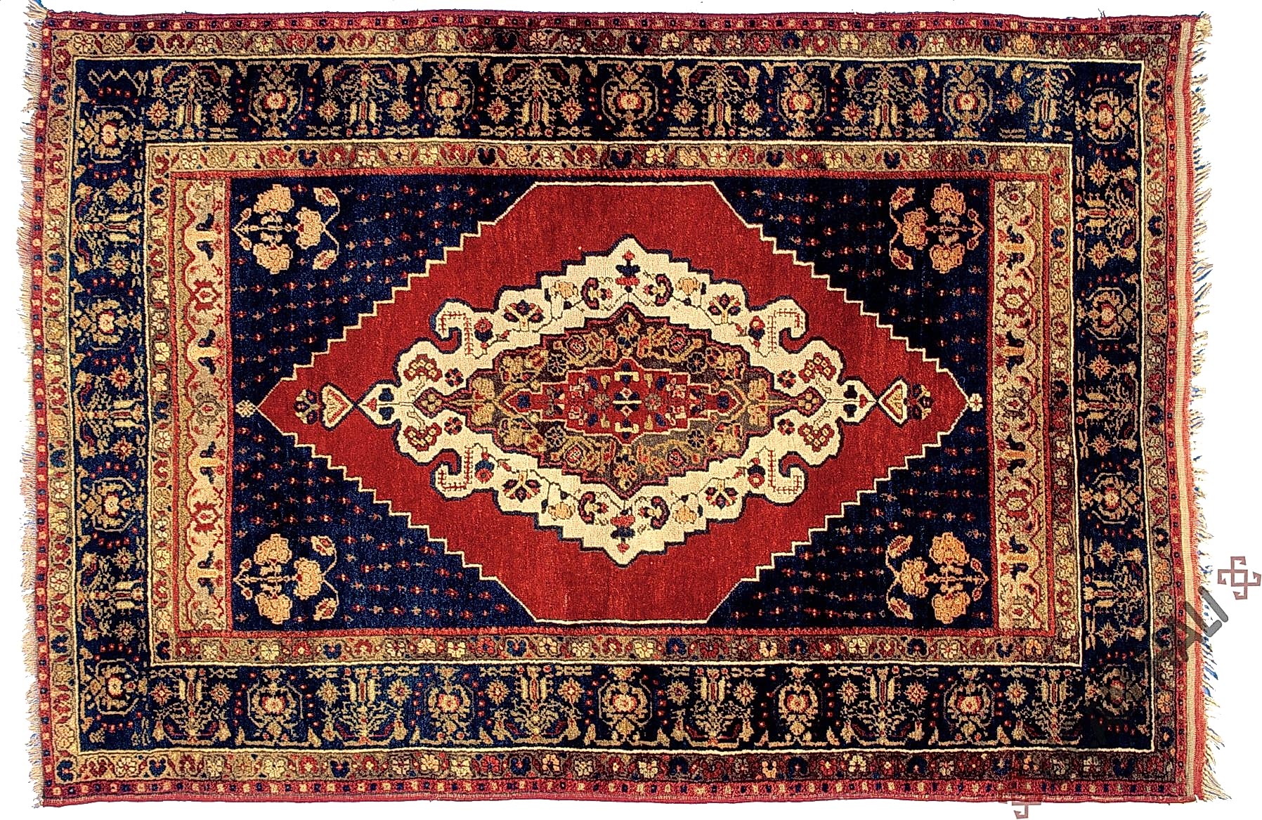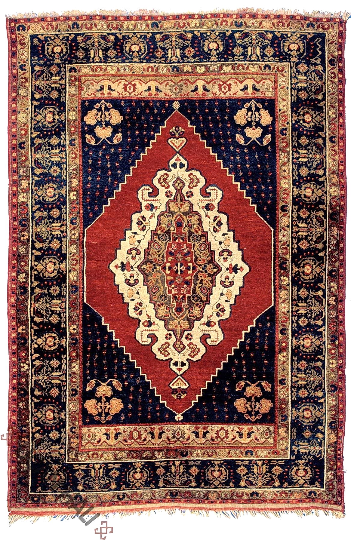 01.76x1.20= 2.11 m², MADALYON VE GÖBEĞİNDEKİ GÖZ ALICI KIRMIZI TONUYLA İLK ANDA DİKKAT ÇEKEN, SON DERECE NADİR BİR TAŞPINAR HALISI.