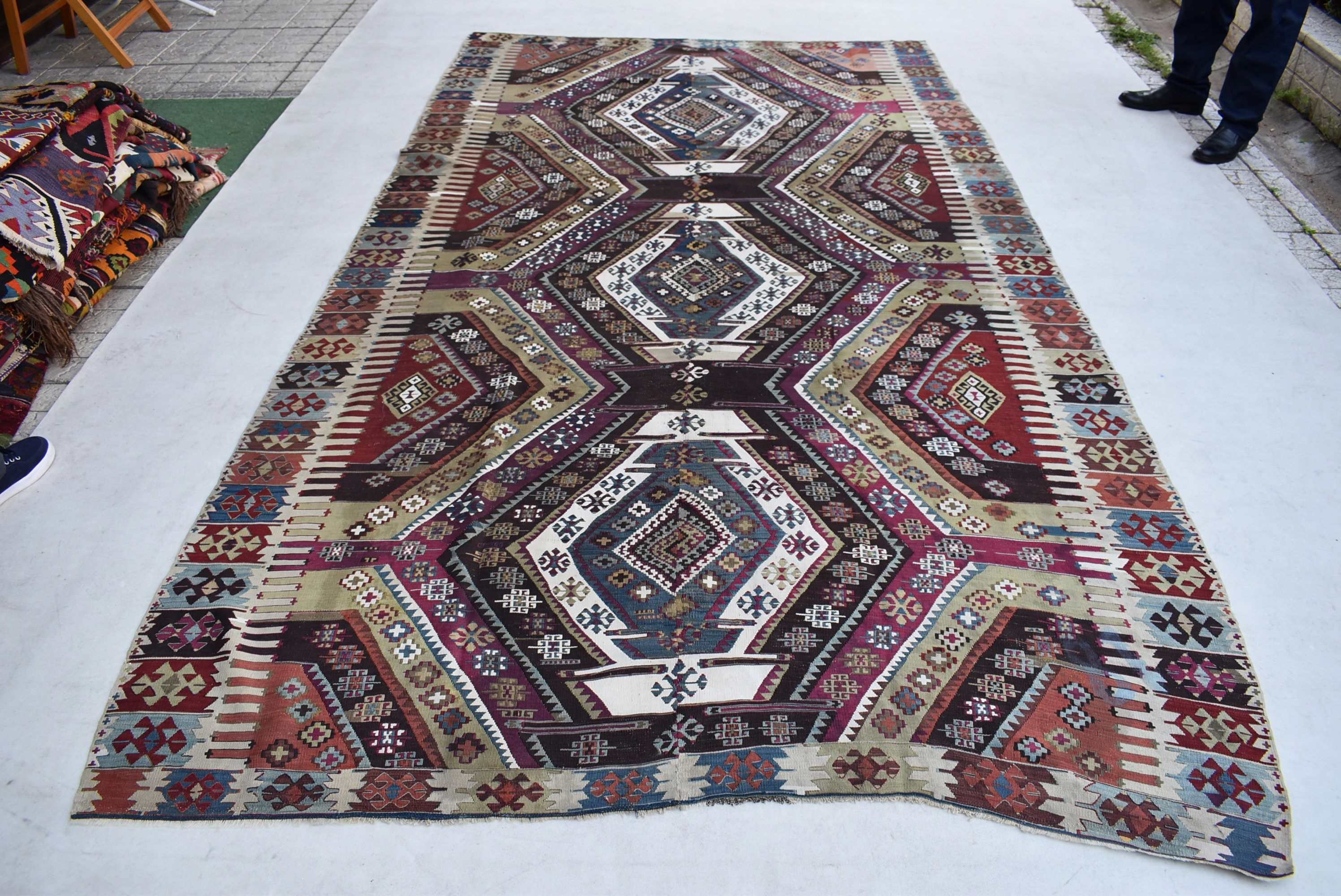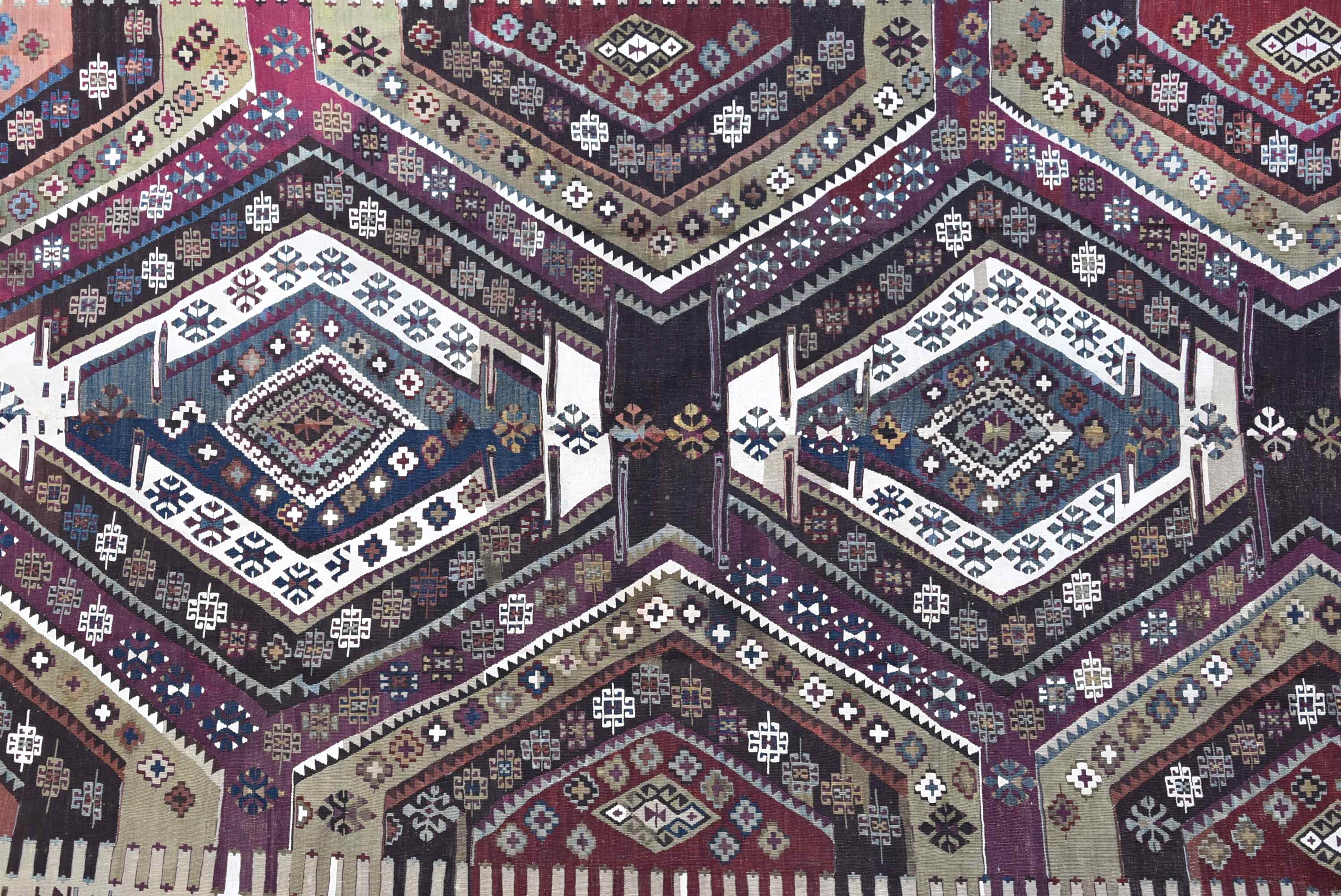 03.24 x1.83=5.93, YAKLAŞIK 100–110 YIL ESKİ, NADİR BİR MALATYA KİLİMİ. EL EĞİRMESİ YÜN İPLER VE DOĞAL KÖK BOYALARLA, USTA İŞÇİLİĞİYLE DOKUNMUŞTUR. DESEN KOMPOZİSYONU DENGELİ, RENK TONLARI SON DERECE UYUMLUDUR. YAŞINA RAĞMEN KONDÜSYONU ÜST SEVİYEDEDİR. TAMAMEN ORİJİNAL HALİNİ KORUMUŞ, TAMİR GEREKTİRMEYEN, KATALOG VE ÜST DÜZEY KOLEKSİYONLAR İÇİN ÖZEL BİR SANAT ESERİDİR.