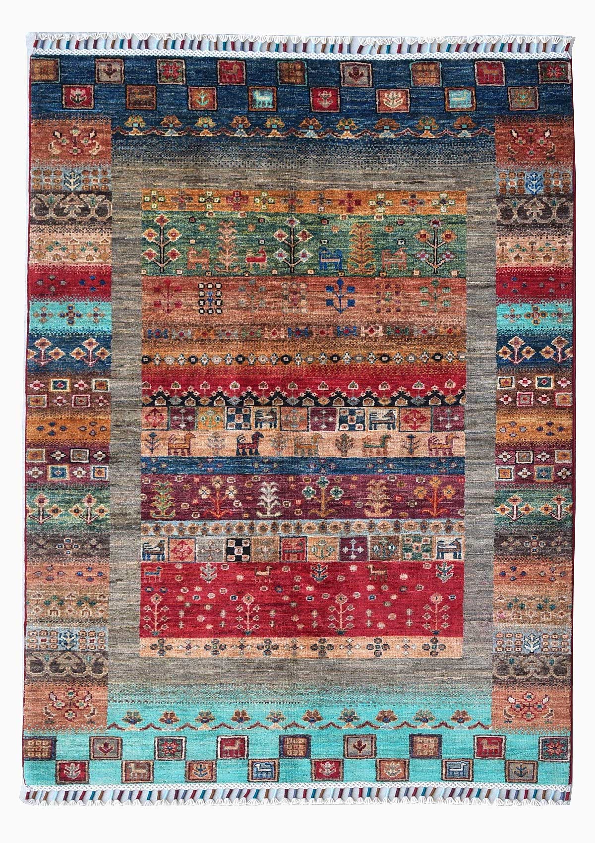 01.67x1.06=1.77, MÜKEMMEL BİR İŞÇİLİK SUNAN BU YENİ ŞİRVAN HALISININ SÜPER KALİTE PARLAK YÜNÜ VAR, TAMAMI KÖK BOYAYLA DOKUNMUŞ VE KAFKAS DESENİ KULLANILMIŞTIR.AFGAN GAZNE YÜNÜ KİRMAN İPİYLE DOKUNMUŞTUR.MODERN ÇİZGİLERLE MUHTEŞEM RENK VE DESENLER KULLANILMIŞTIR, SEVİMLİ HAYVAN MOTİFLERİ MEVCUTTUR.