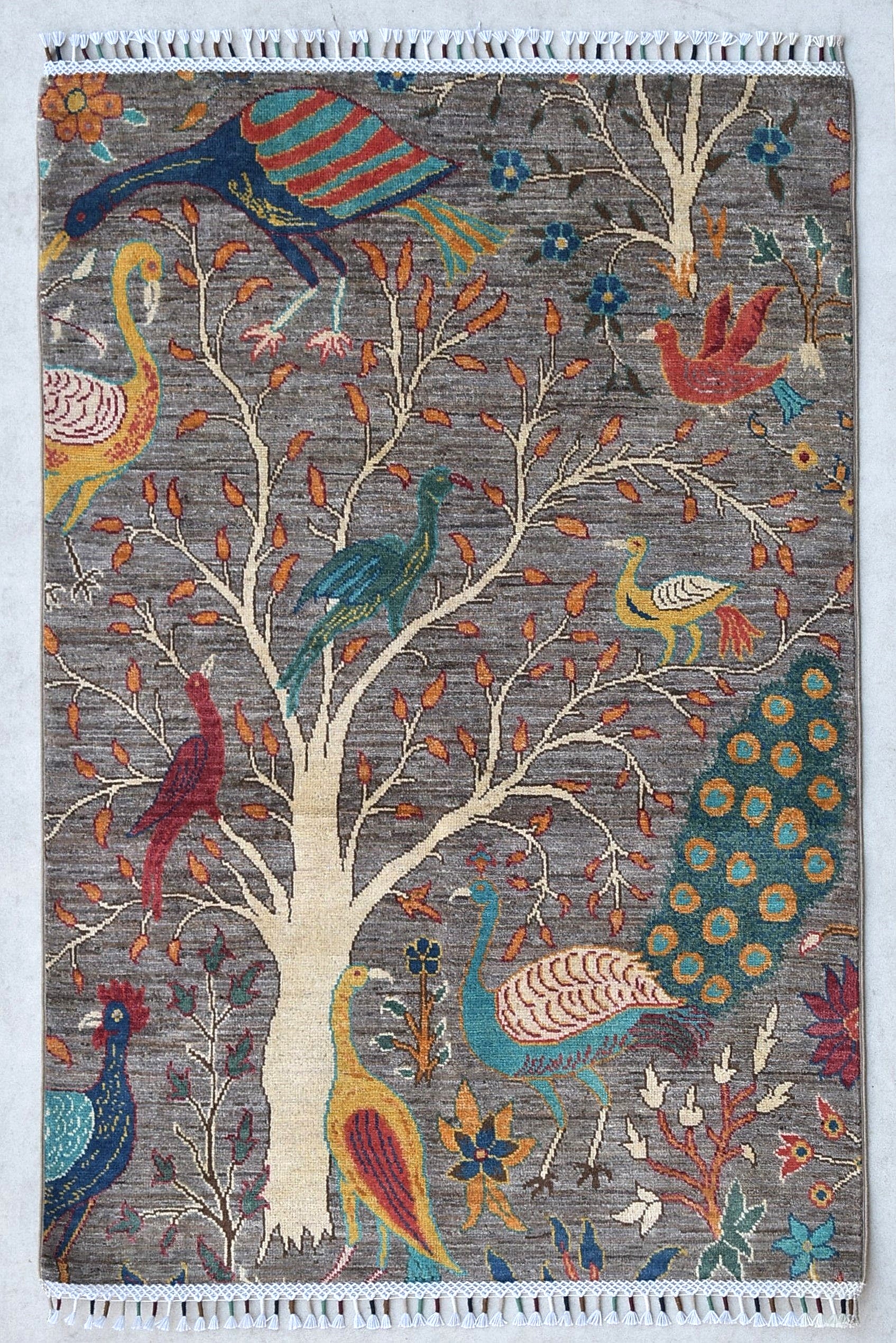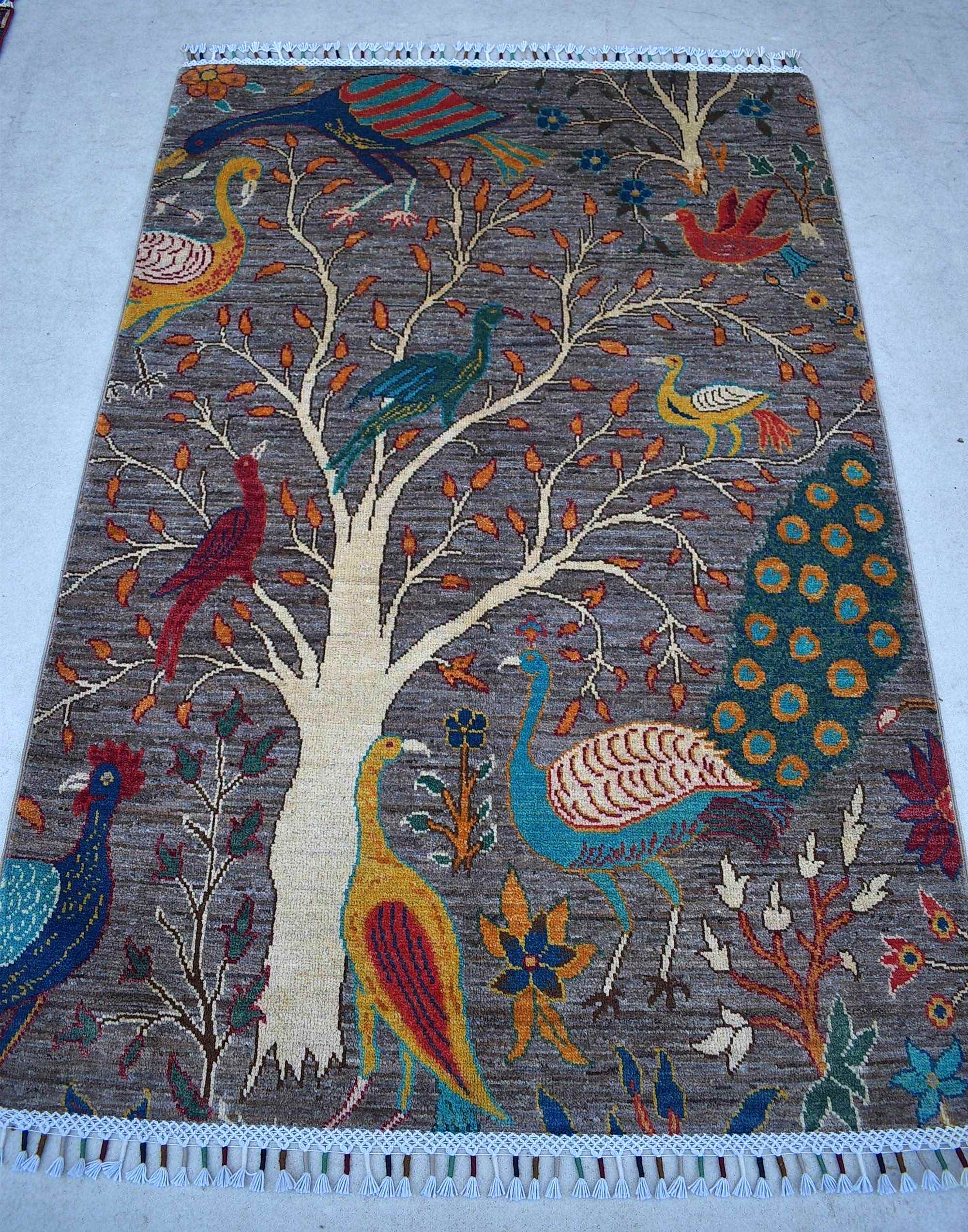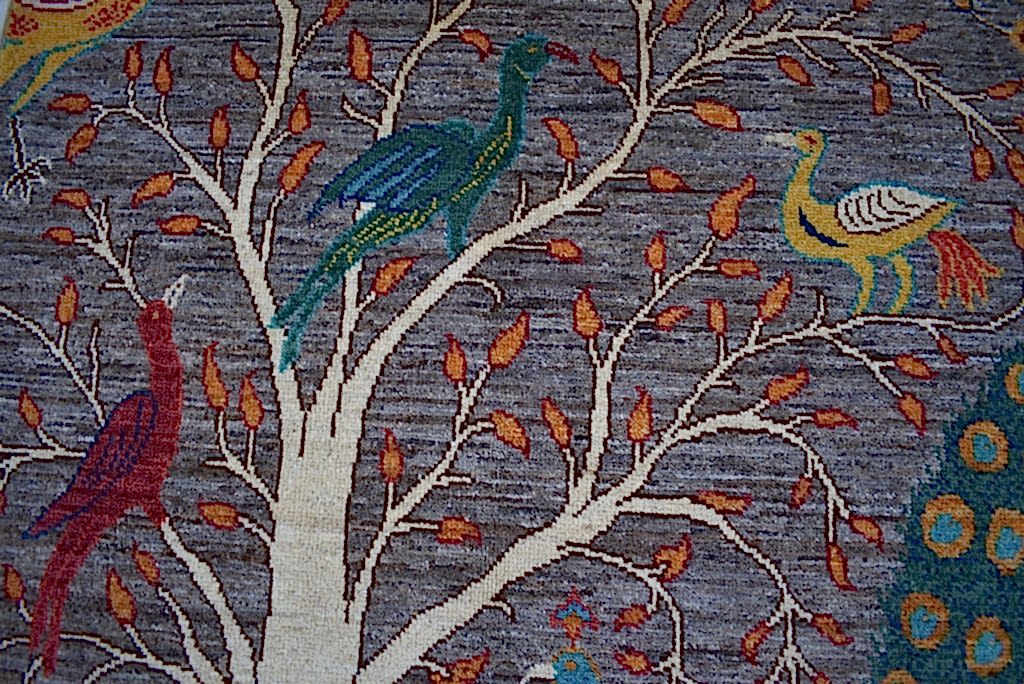 01.50x1.00=1.50, MÜKEMMEL BİR İŞÇİLİK SUNAN BU YENİ "ŞİRVAN" HALISININ SÜPER KALİTE PARLAK YÜNÜ VAR. TAMAMI KÖK BOYAYLA DOKUNMUŞ VE GRİ ZEMİN ÜZERİNE ÇOK NADİR DOKUNAN HAYATIN GÜZELLİĞİNİ VE YAŞAMA SEVİNCİNİ SİMGELEYEN "HAYAT AĞACI" DESENİ VE TAVUS KUŞU VE DİĞER KUŞ MOTİFLERYLE ŞAHANE DESEN VE RENKLER KULLANILMIŞ. TANITIM FİYATIYLA SİTEMİZDE VE ÖZEL İNDİRİMLİDİR.