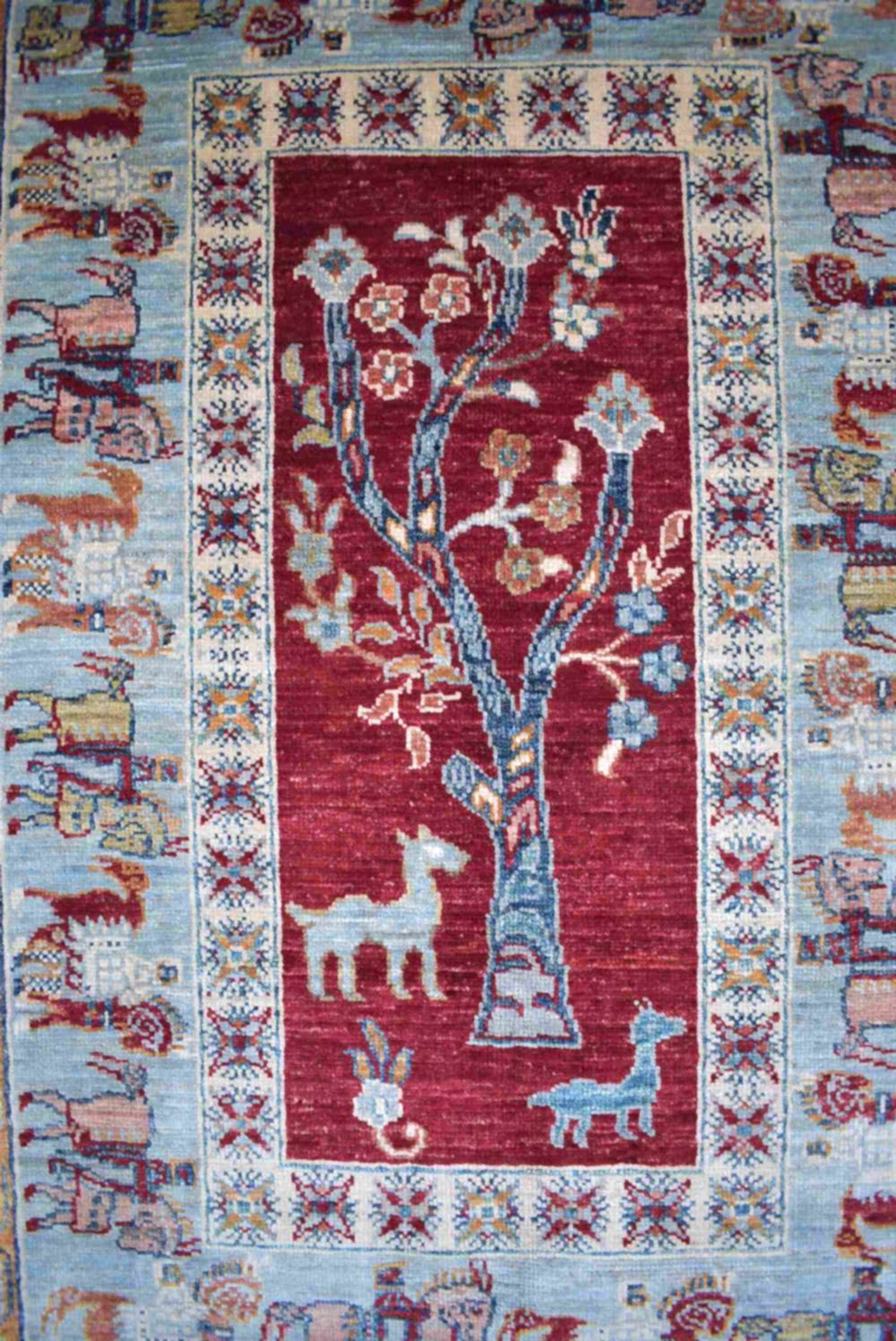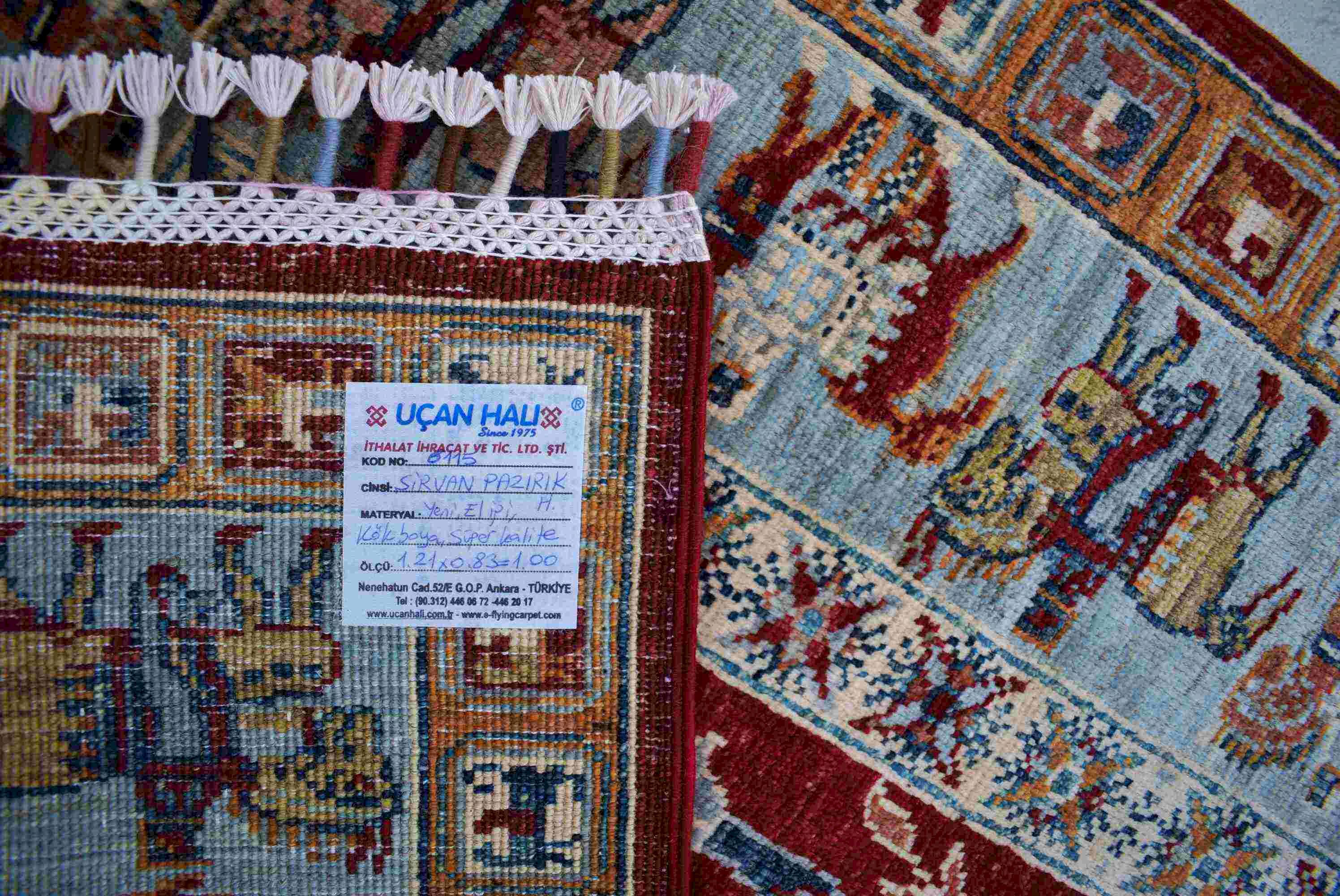 01.21x0.83=1.00, MÜKEMMEL BİR İŞÇİLİK SUNAN BU YENİ "ŞİRVAN" HALISININ SÜPER KALİTE PARLAK YÜNÜ VAR. TAMAMI KÖK BOYAYLA DOKUNMUŞ VE DÜNYADA İLK HALI DESENİ OLAN ÇOK NADİR "PAZIRIK" DESENİ KULLANILMIŞTIR. ŞAHANE DESEN VE RENKLER KULLANILMIŞ.ÇİFTİ MEVCUTTUR.
