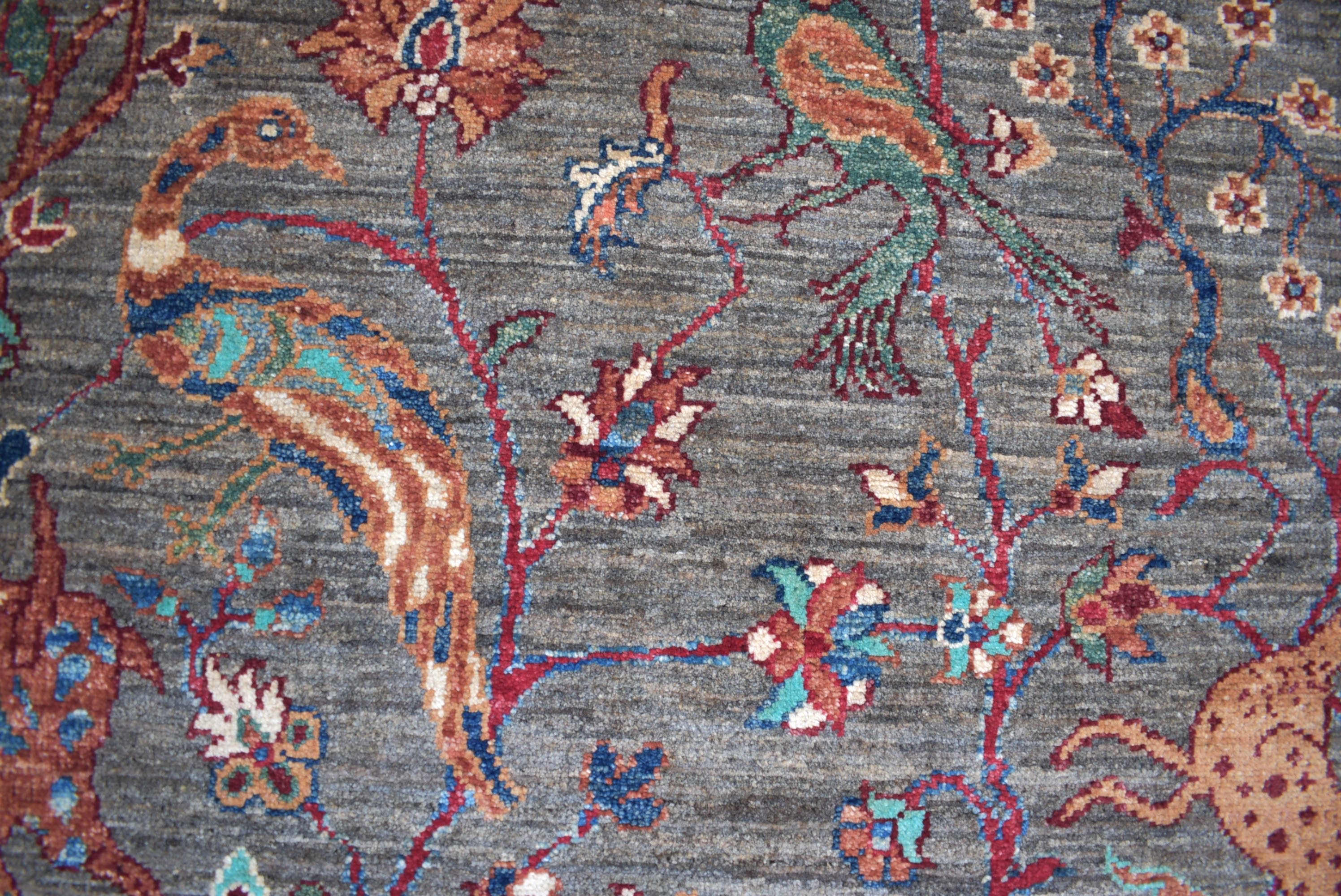 01.30x0.86=1.12, MÜKEMMEL BİR İŞÇİLİK SUNAN BU YENİ "ŞİRVAN" HALISININ SÜPER KALİTE PARLAK YÜNÜ VAR. TAMAMI KÖK BOYAYLA DOKUNMUŞ VE NADİR DOKUNAN GRİ RENK VE TAVUS KUŞU VE DİĞER KUŞ MOTİFLERYLE ŞAHANE DESEN VE RENKLER KULLANILMIŞ.
