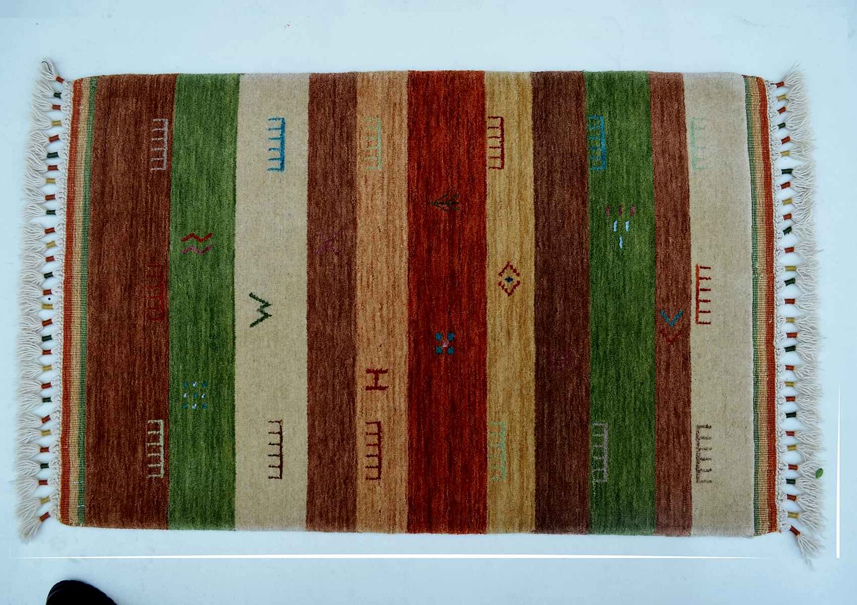 0 0.90x0.60=0.54 m2, YENİ, SÜPER KALİTE YENİ ZELANDA YÜNÜYLE DOKUNMUŞ MODERN NEPAL HALISI.